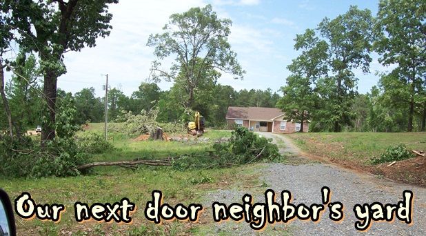 Our neighbors on each side, and all the way down the road, damaged