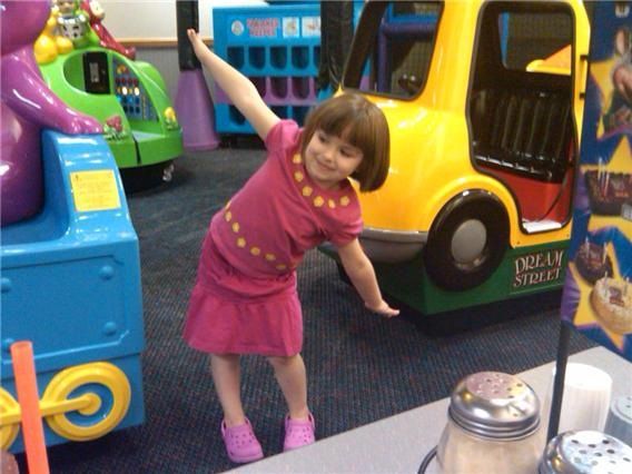 I take Zoe to Chuck E. Cheese across from the hotel