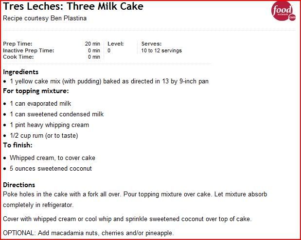 Popular in parts of Latin America, this cake has been one of my favorites since the first time I tried it at a little dive in Miami. There are numerous variations on the preparation, but to make life easy, this time, I used the following recipe from the Food Network: